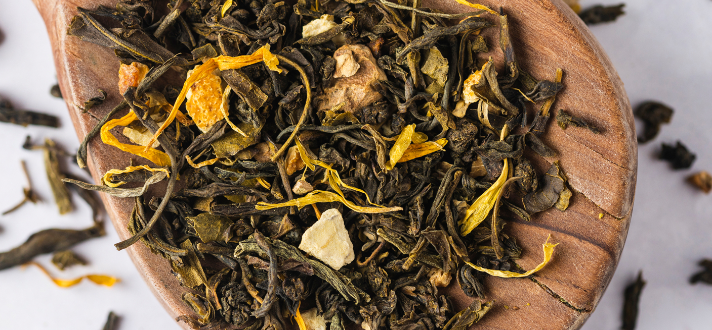 ZiehzeitGrüner Tee*, Ingwer*, Orangenschalen*, Natürliches Zitronenaroma, Grapefruitschalen*, natürliches Ingweraroma, Ringelblumenblüten*