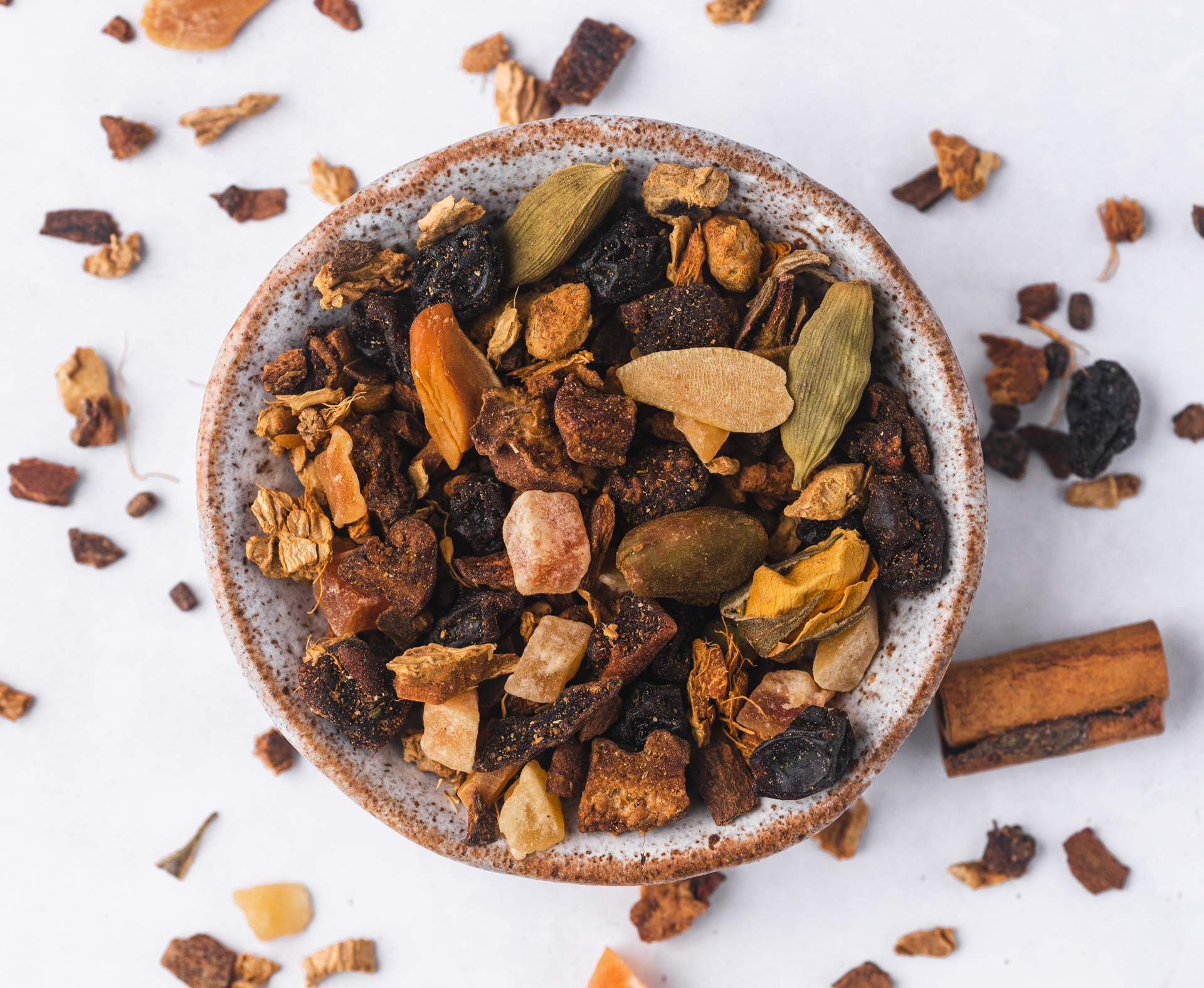 ZiehzeitHagebuttenschalen, Hibiskus, Apfelstücke, Orangenschalen, Marillenstücke (gefriergetrocknet, gezuckert), Pfirsichstücke (gefriergetrocknet, gezuckert), Aroma, Ringelblumenblüten
