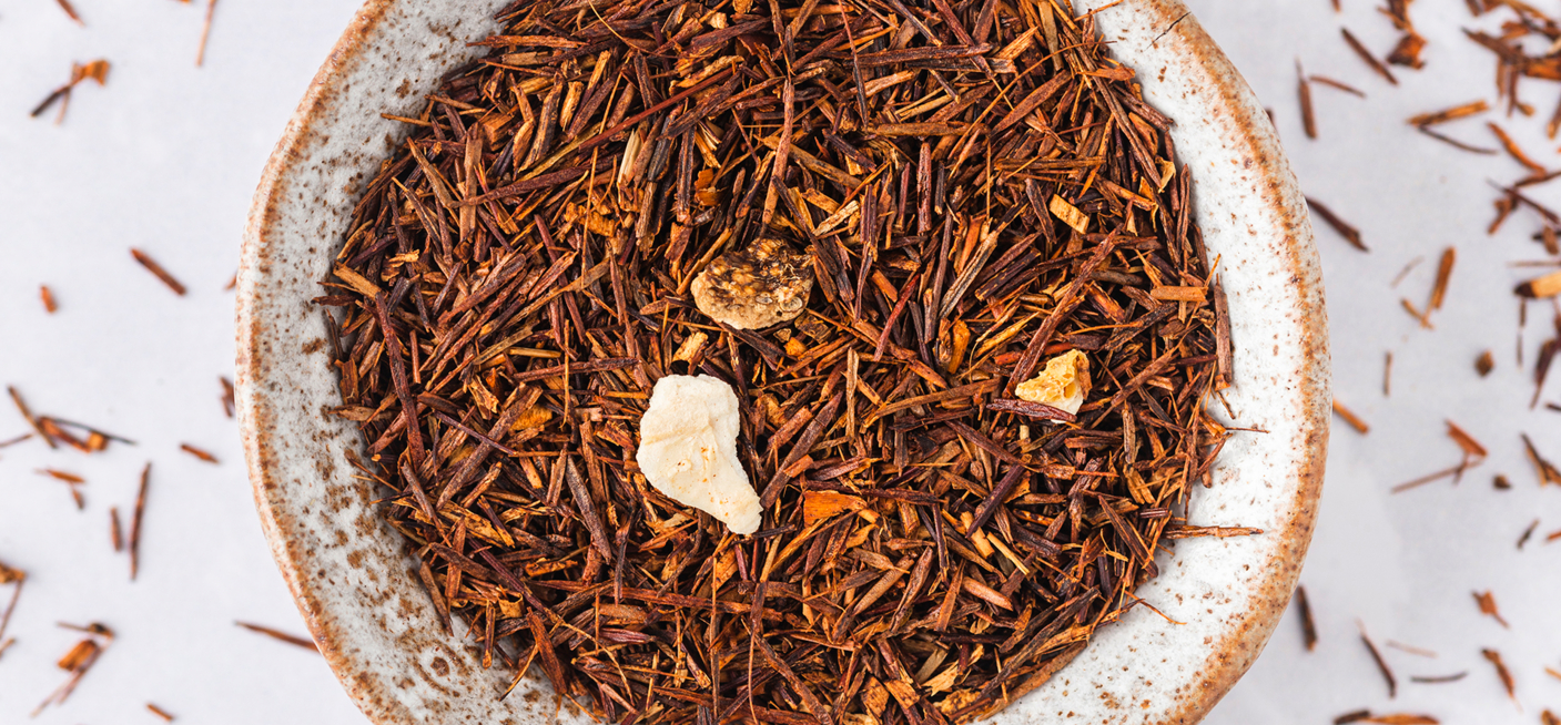 Natürlich süßer Rooibos aus Südafrika gemischt mit Orangenschalen und fruchtigen Orangen-Aromen! Ergibt eine aromatische, blutorange Tasse.