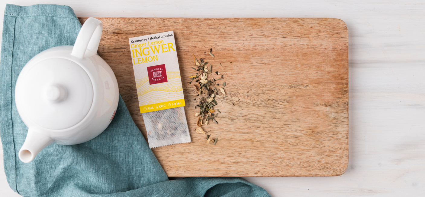 Feinster loser Tee im Beutel für 0,4l Teegenuss: Anregender Kräutertee mit erfrischend intensivem Geschmack. Macht wach mit angenehmer Ingwerschärfe!